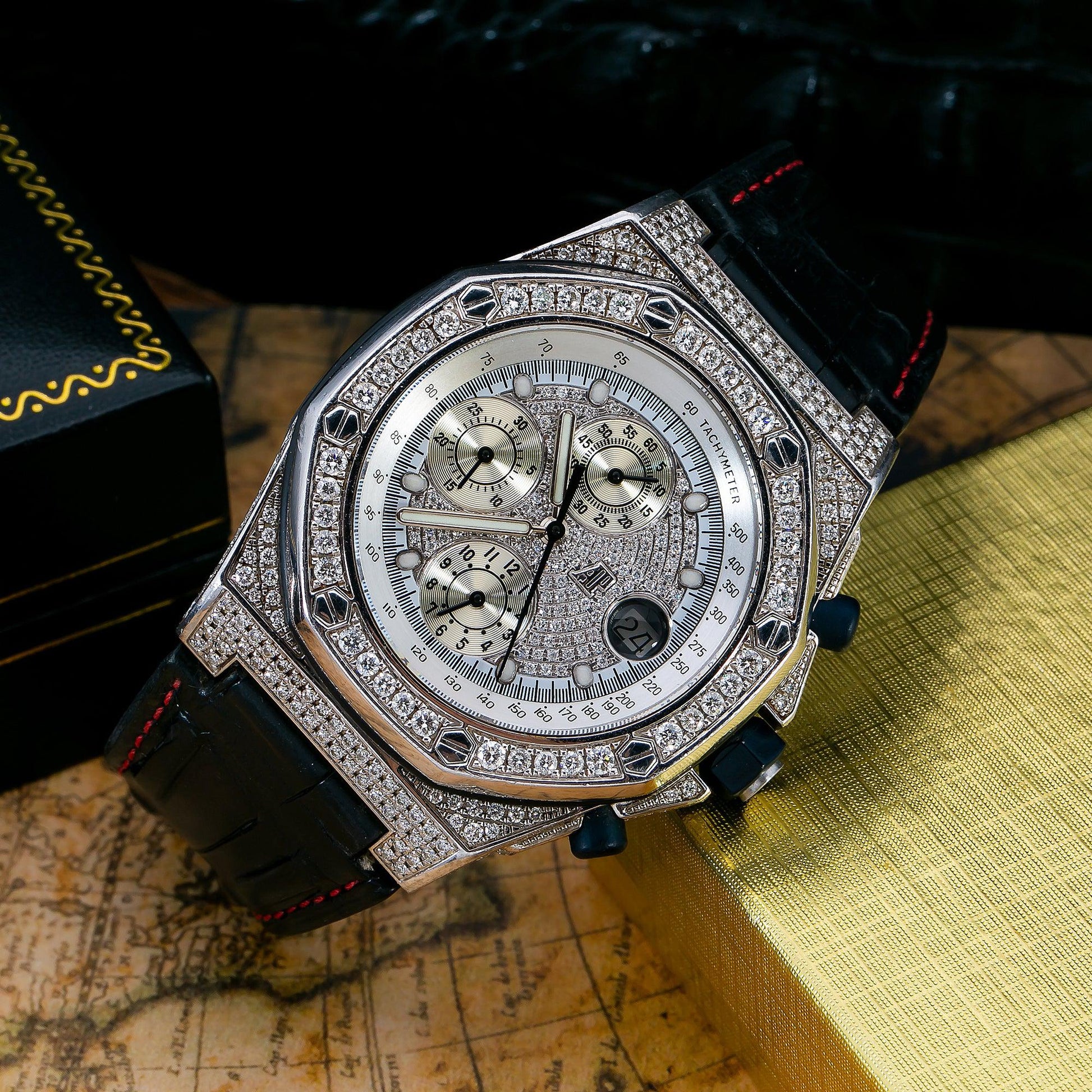 Audemars Piguet Royal Oak Offshore Silver Diamond Dial With Leather Bracelet