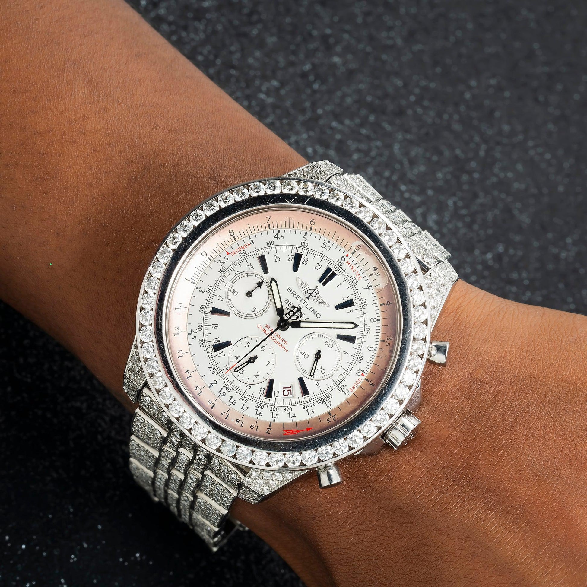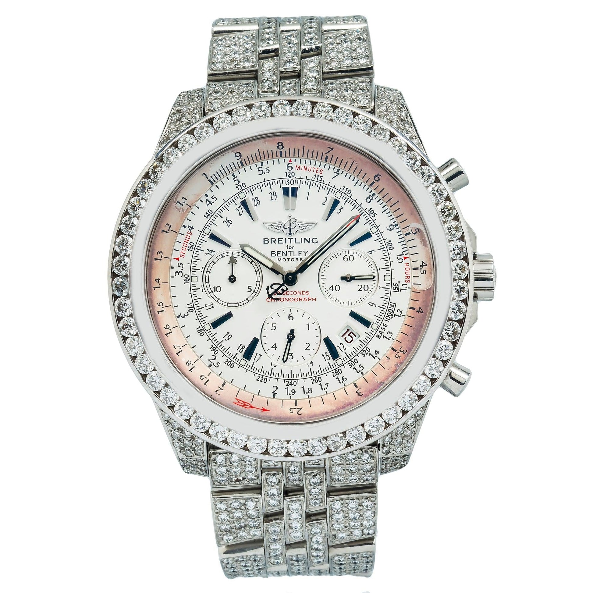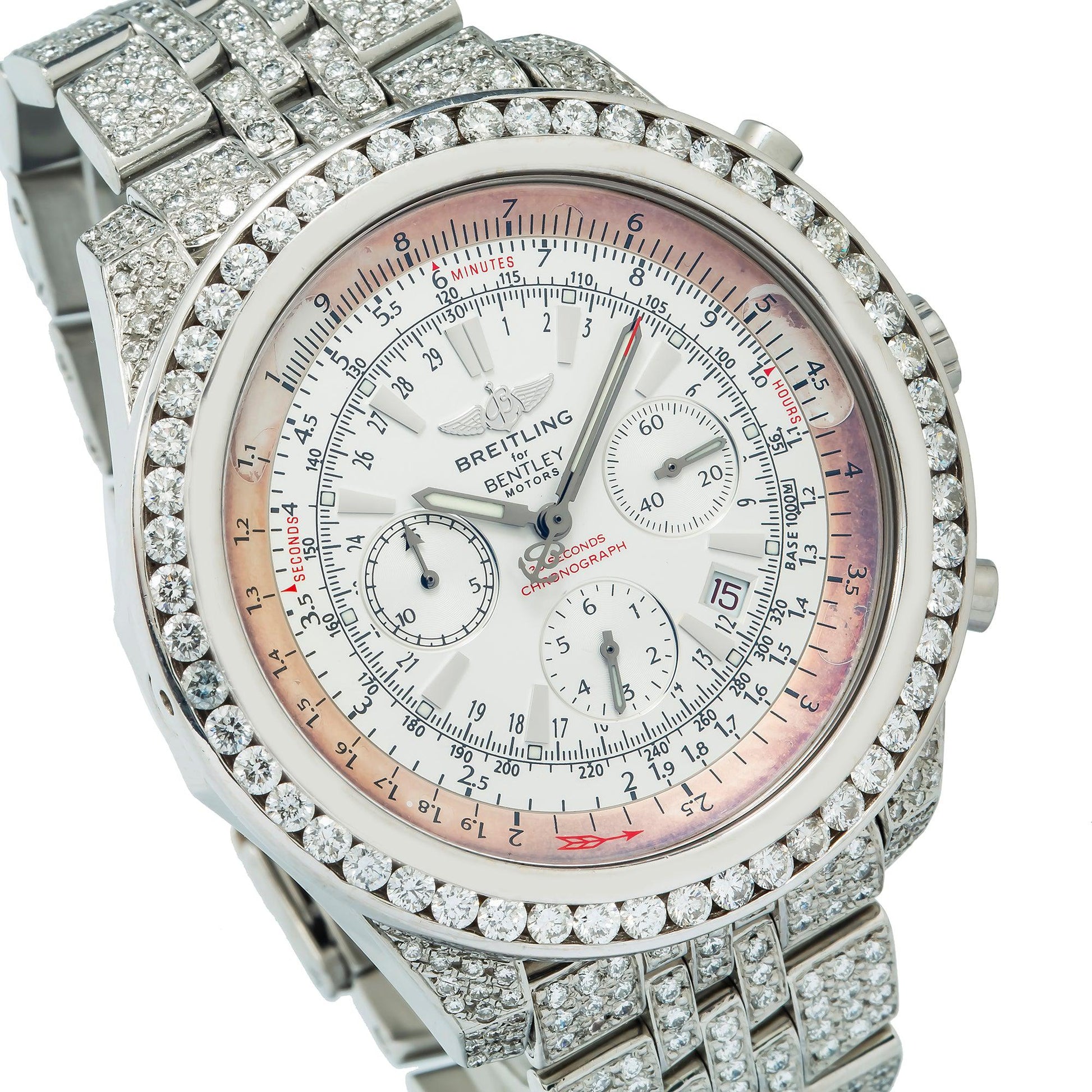 Breitling Bentley Motors A25362 49MM White Dial With Diamond Bezel And Bracelet 8.00 CT