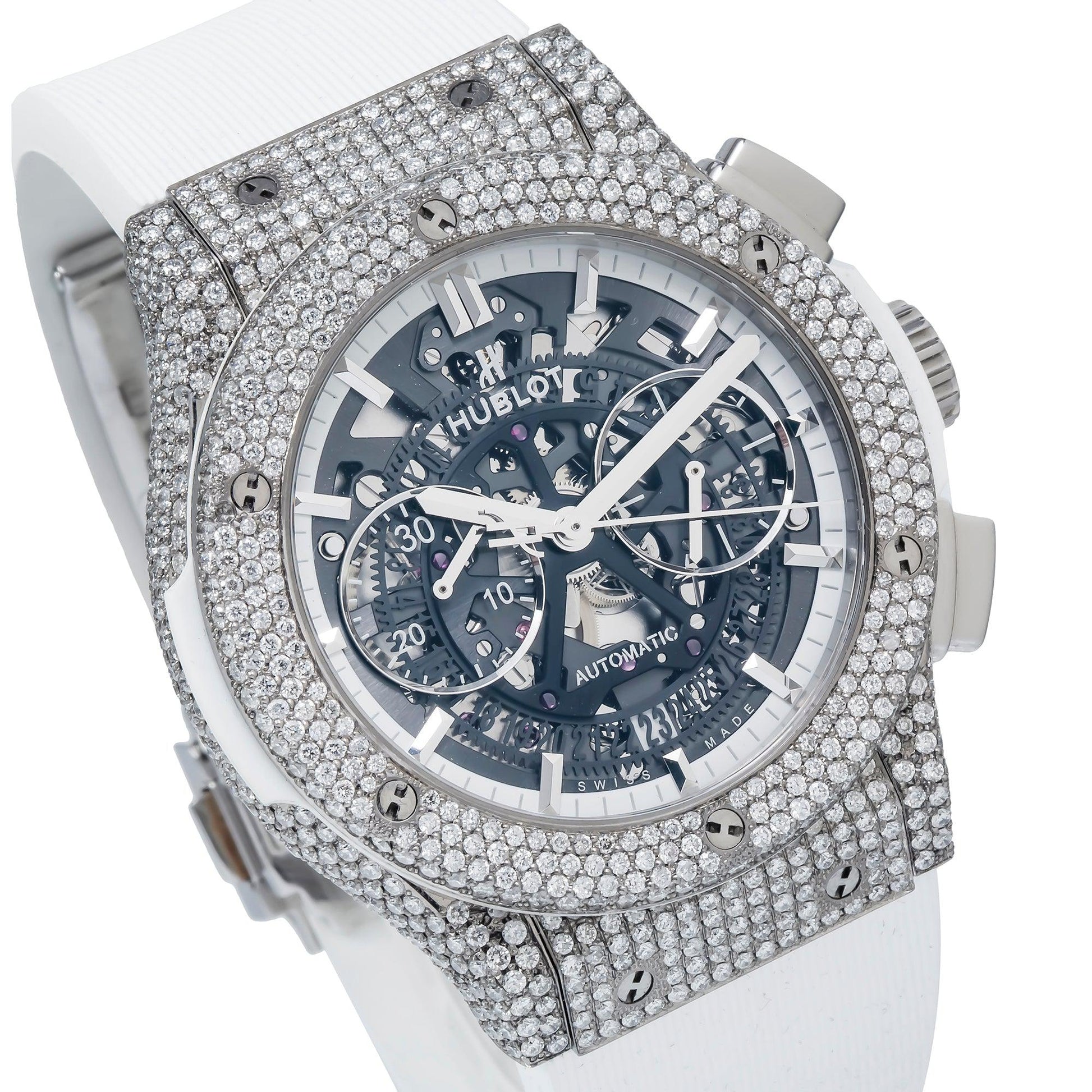 Hublot Classic Fusion Aerofusion 45MM Skeleton Diamond Dial And Bezel With White Rubber Bracelet