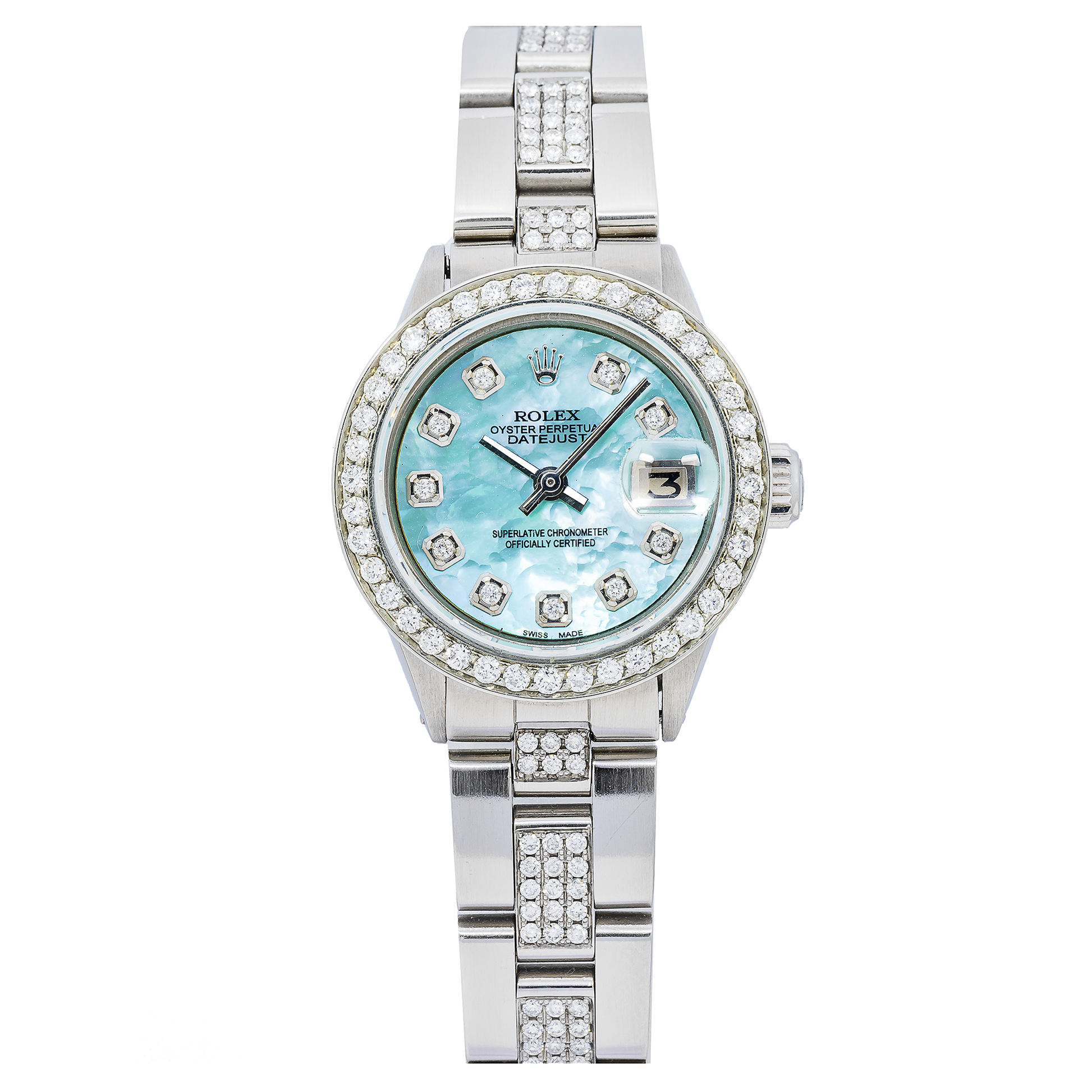 Rolex Datejust 26MM 6916 Blue Mother of Pearl Diamond Dial Diamond Bezel Stainless Steel Semi Diamond Oyster Bracelet