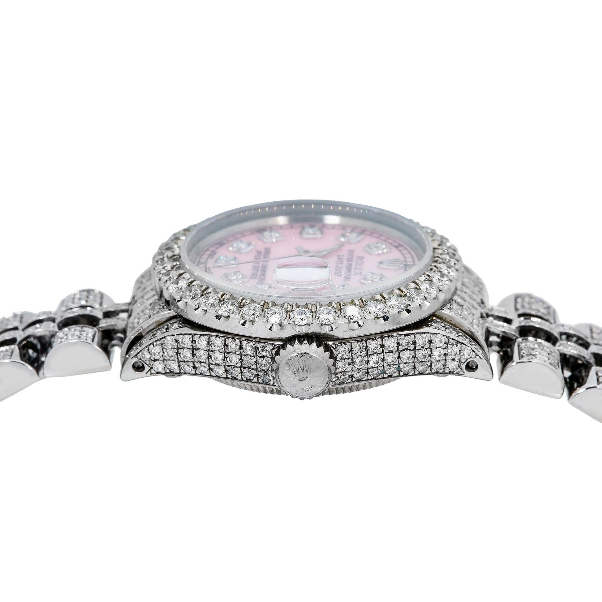Rolex Datejust 26MM 6916 Pink Mother of Pearl Diamond Dial Diamond Bezel Stainless Steel Full Diamond Jubilee Bracelet 6.75ct