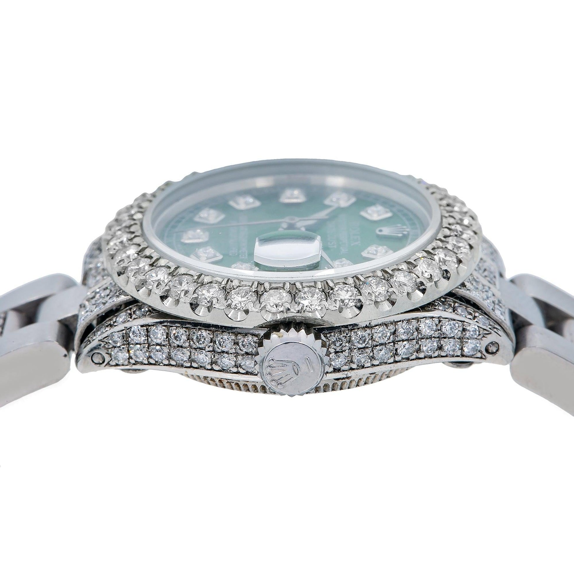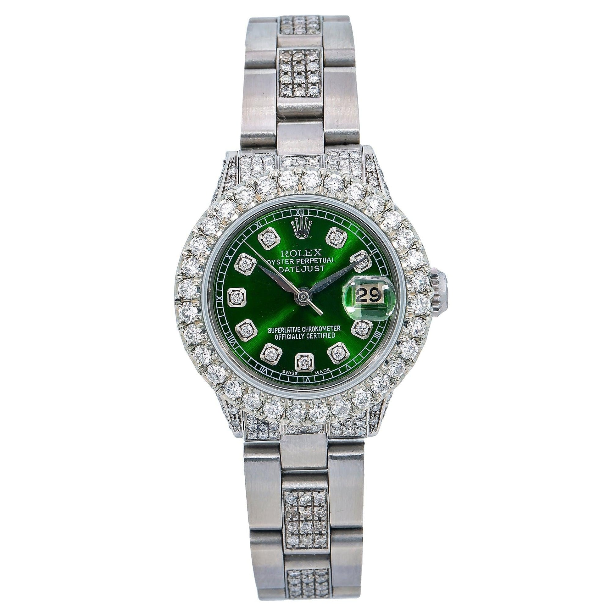 Rolex Datejust 26MM 69160 Green Diamond Dial Diamond Bezel Stainless Steel Semi Diamond Oyster Bracelet 6.05ct