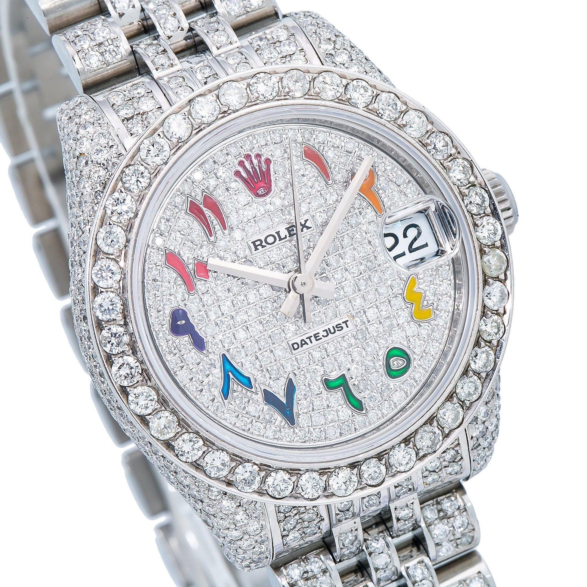 Rolex Datejust 31MM 178240 Diamond Paved Rainbow Eastern Arabic Dial Diamond Bezel Stainless Steel Full Diamond Jubilee Bracelet