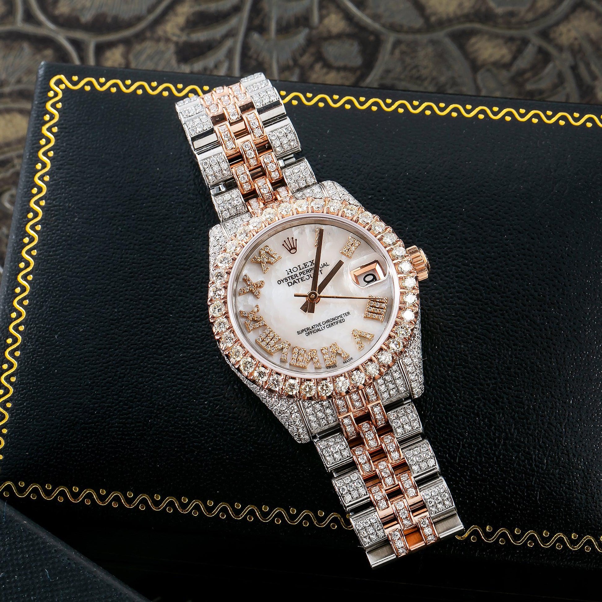 Rolex Datejust 31MM 178241 Mother of Pearl Roman Diamond Dial Diamond Bezel Two Tone Rose Gold Full Diamond Jubilee Bracelet 9.25ct