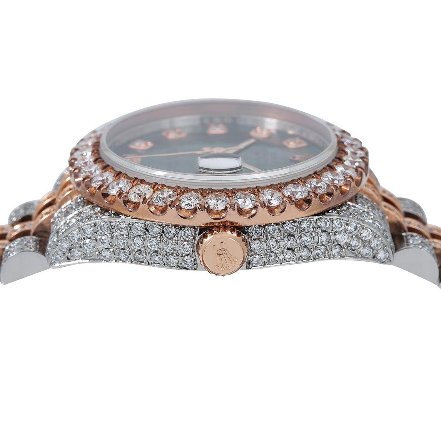 Rolex Datejust 31MM 178271 Black Mother of Pearl Diamond Dial Diamond Bezel Two Tone Rose Gold Full Diamond Jubilee Bracelet