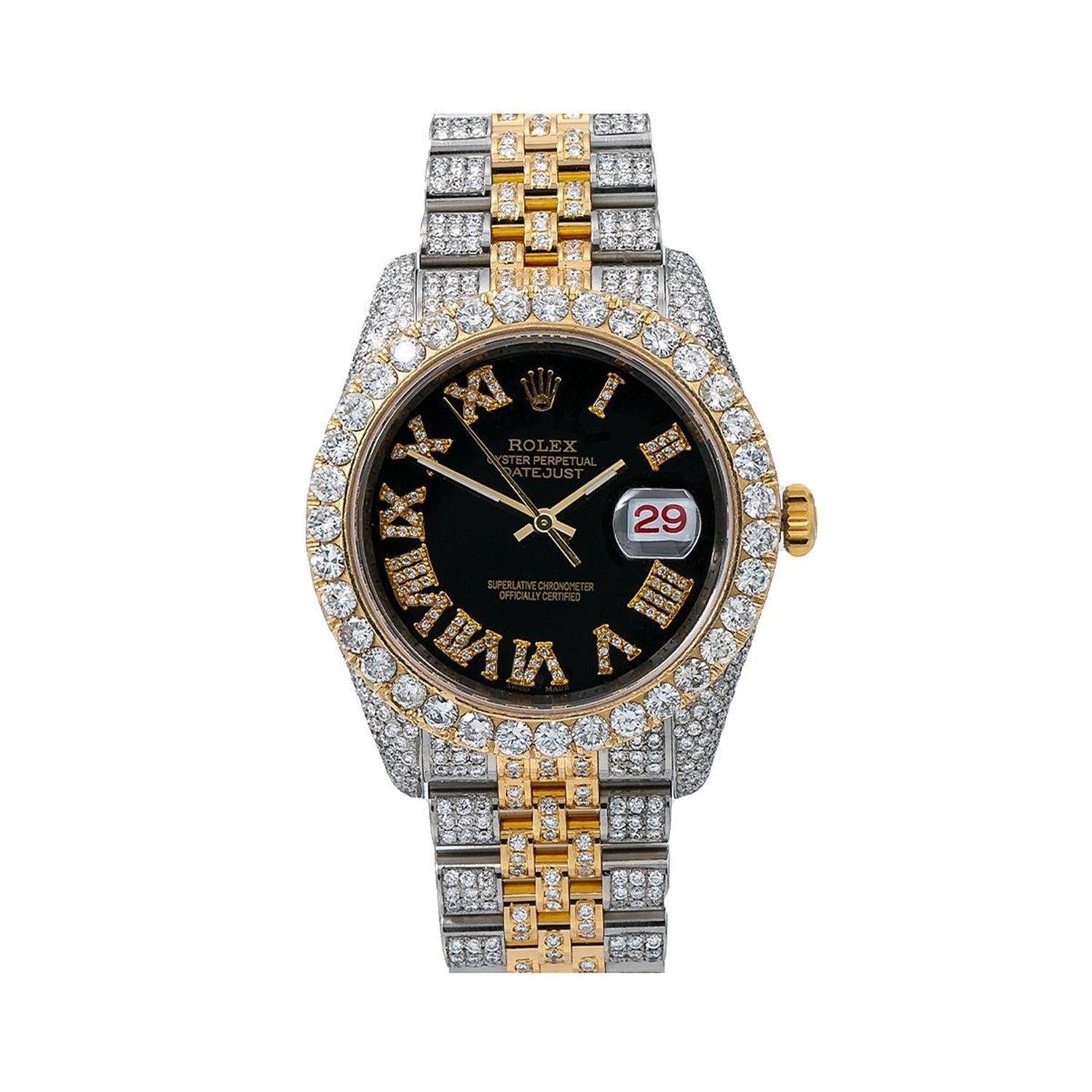 Rolex Datejust 36MM 116233 Black Roman Diamond Dial Diamond Bezel Two Tone Yellow Gold Full Diamond Jubilee Bracelet