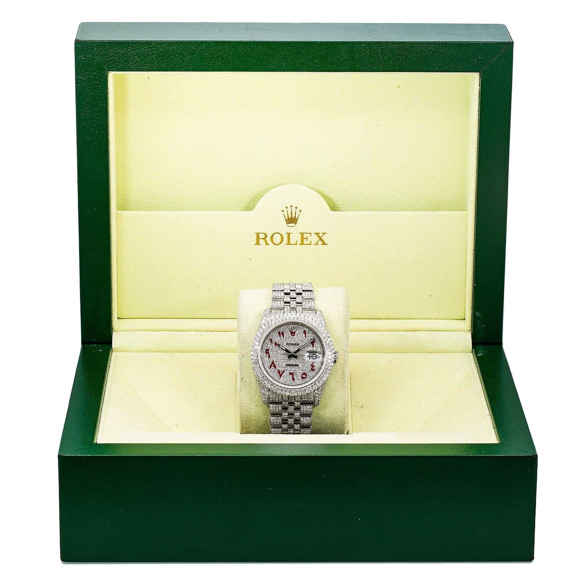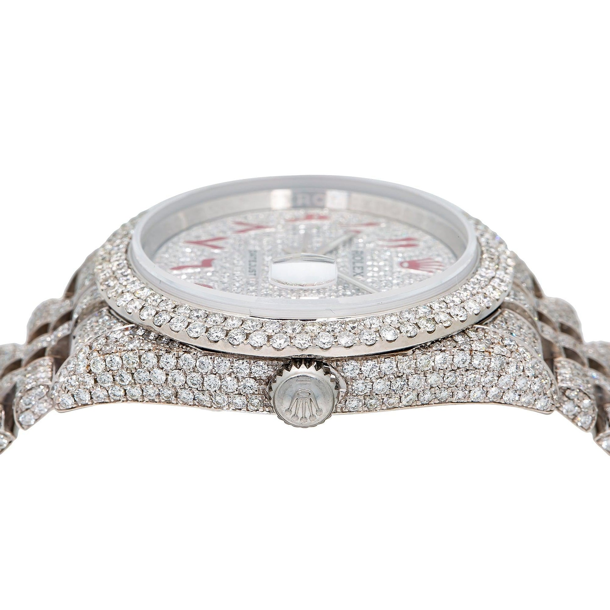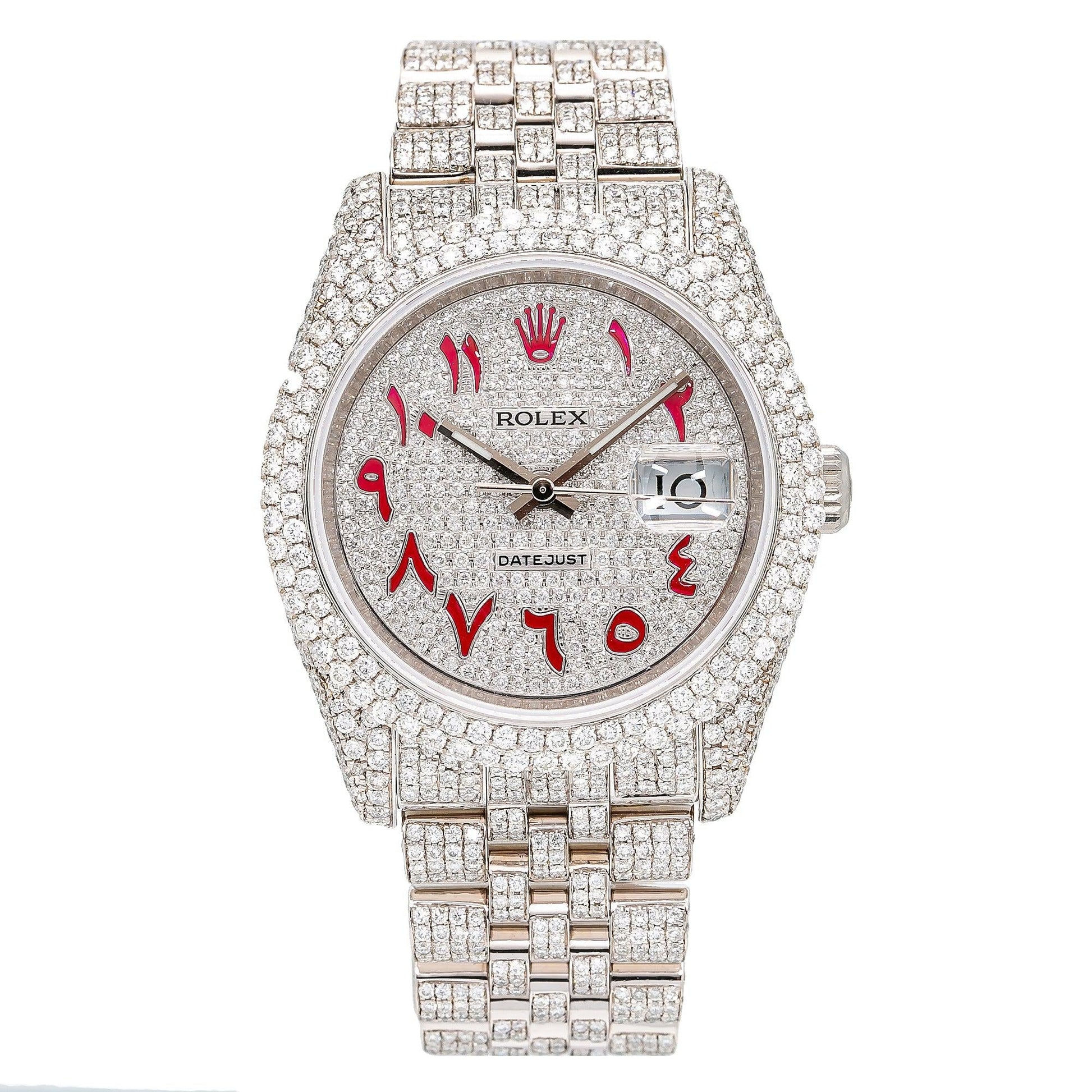 Rolex Datejust 36MM 116234 Diamond Paved Red Eastern Arabic Dial Diamond Bezel Stainless Steel Full Diamond Jubilee Bracelet 12.75ct