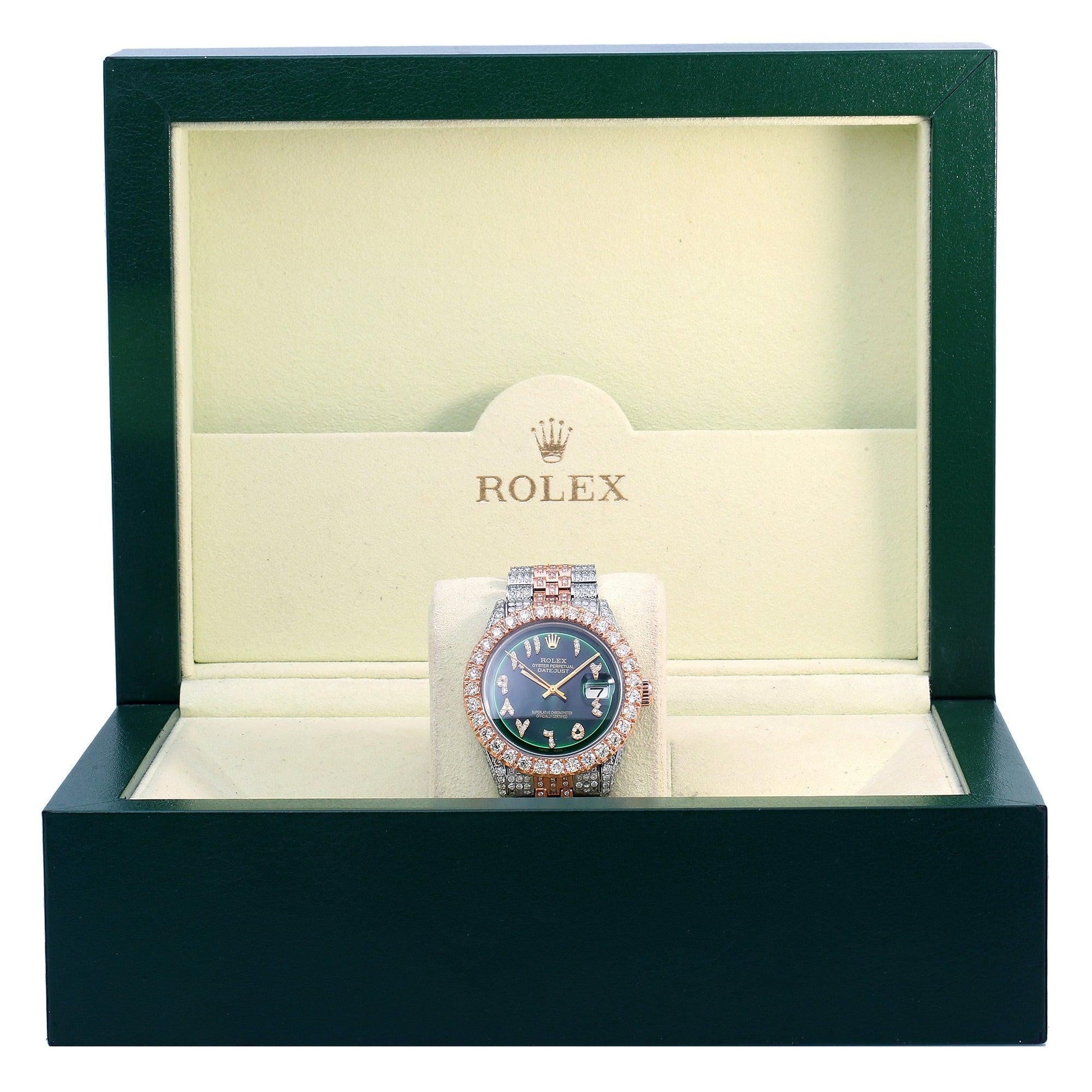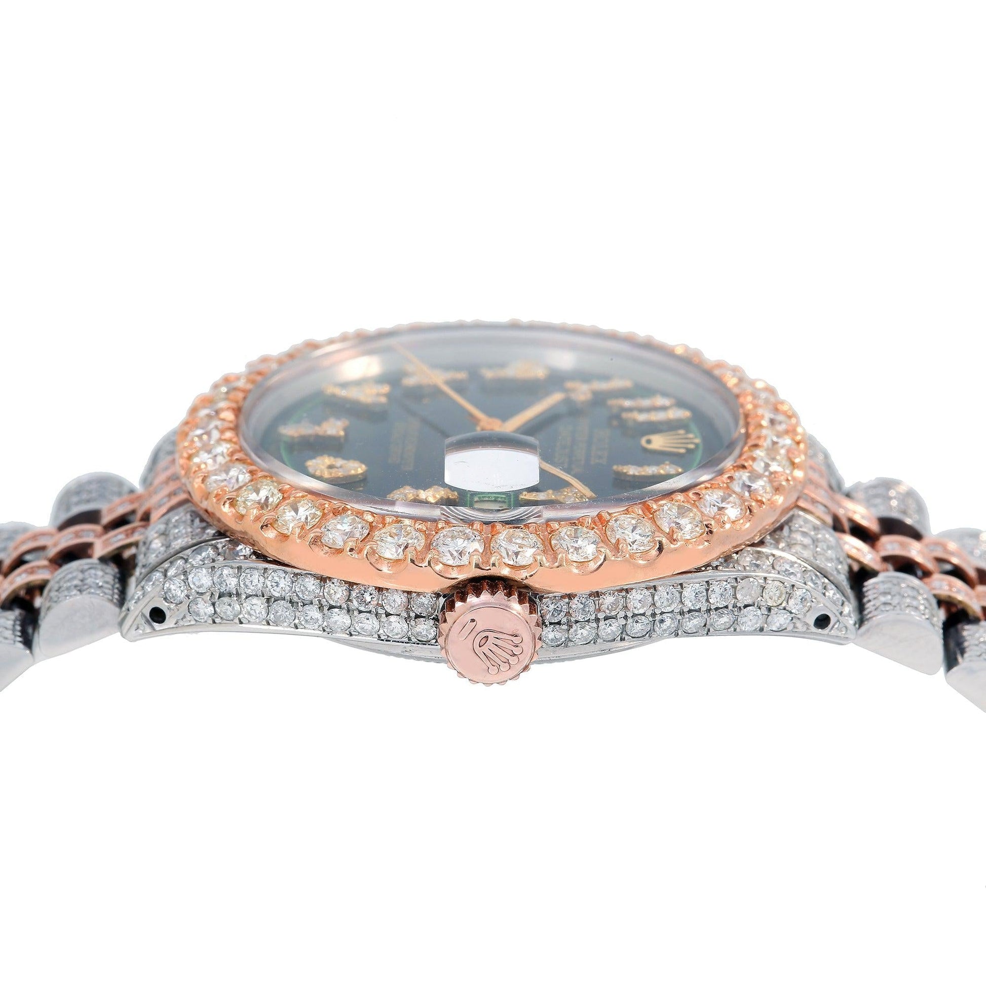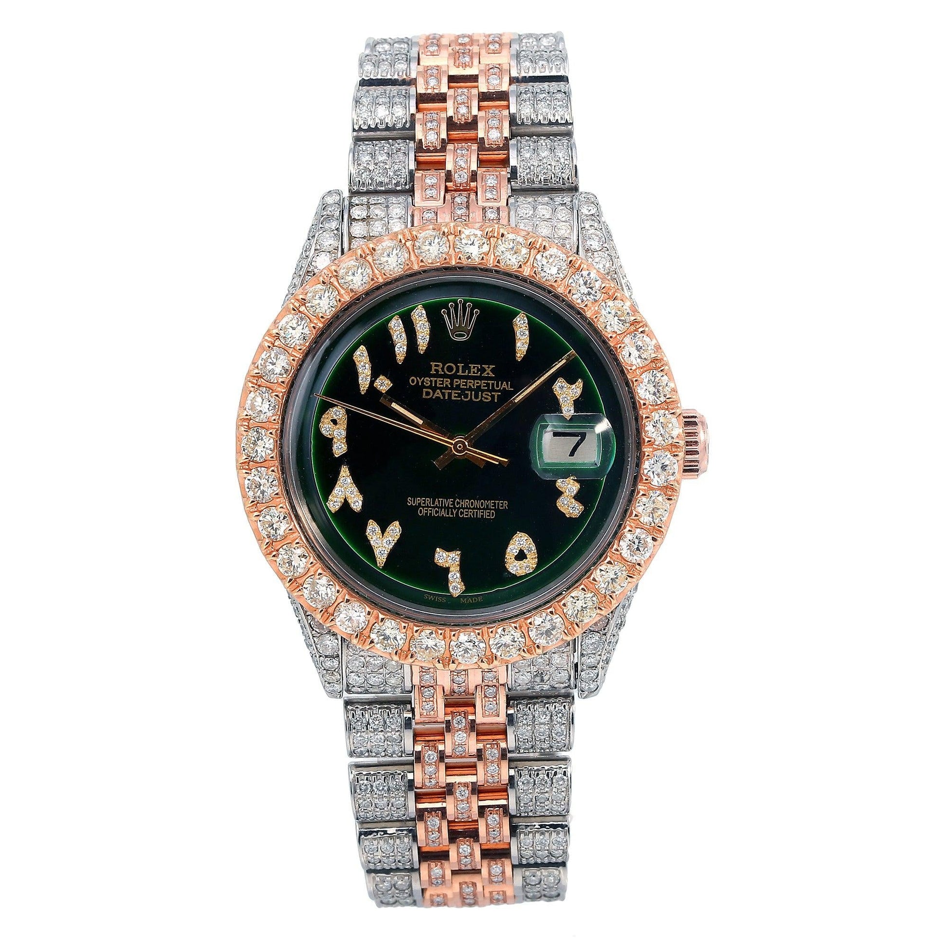 Rolex Datejust 36MM 1601 Green Eastern Arabic Diamond Dial Diamond Bezel Two Tone Rose Gold Full Diamond Jubilee Bracelet