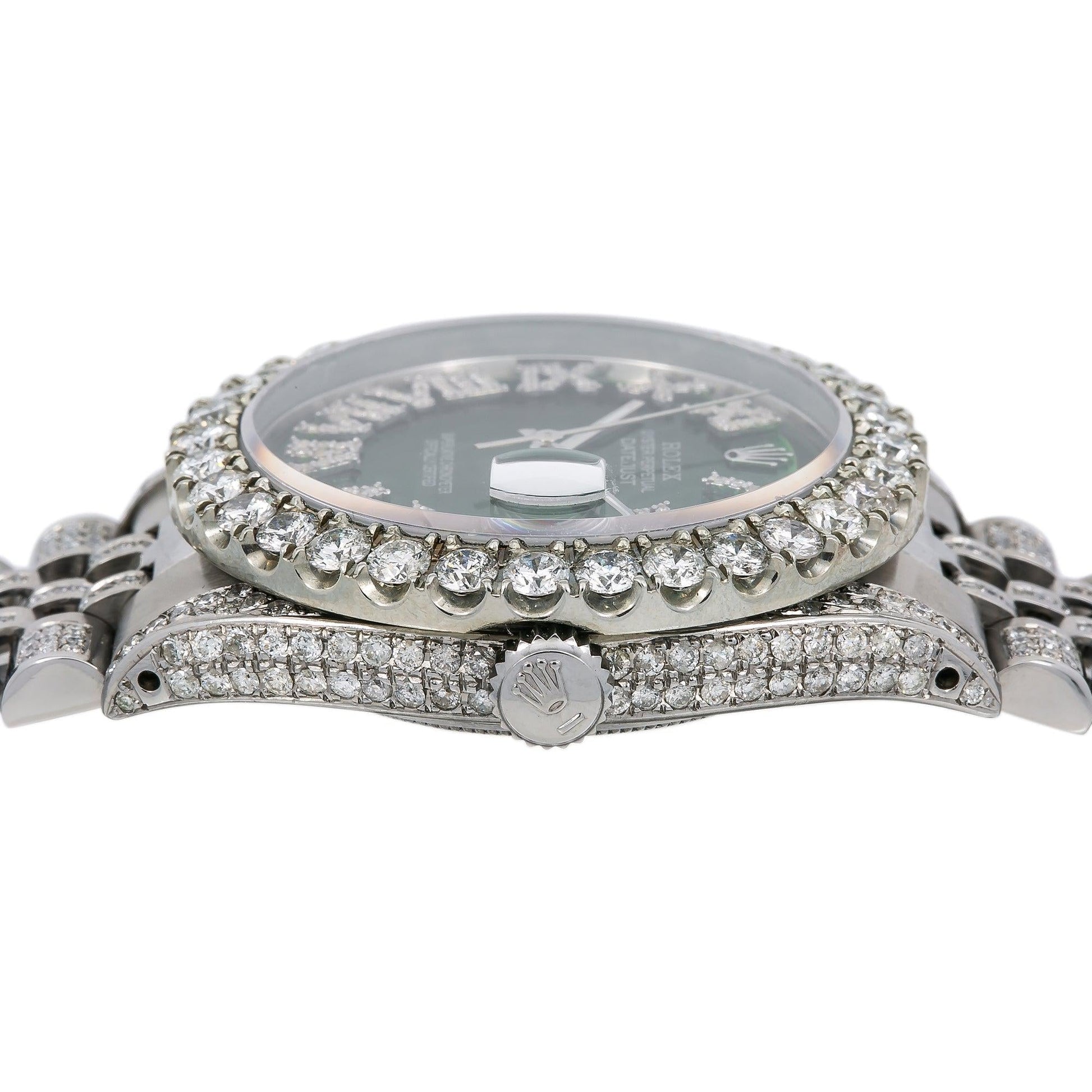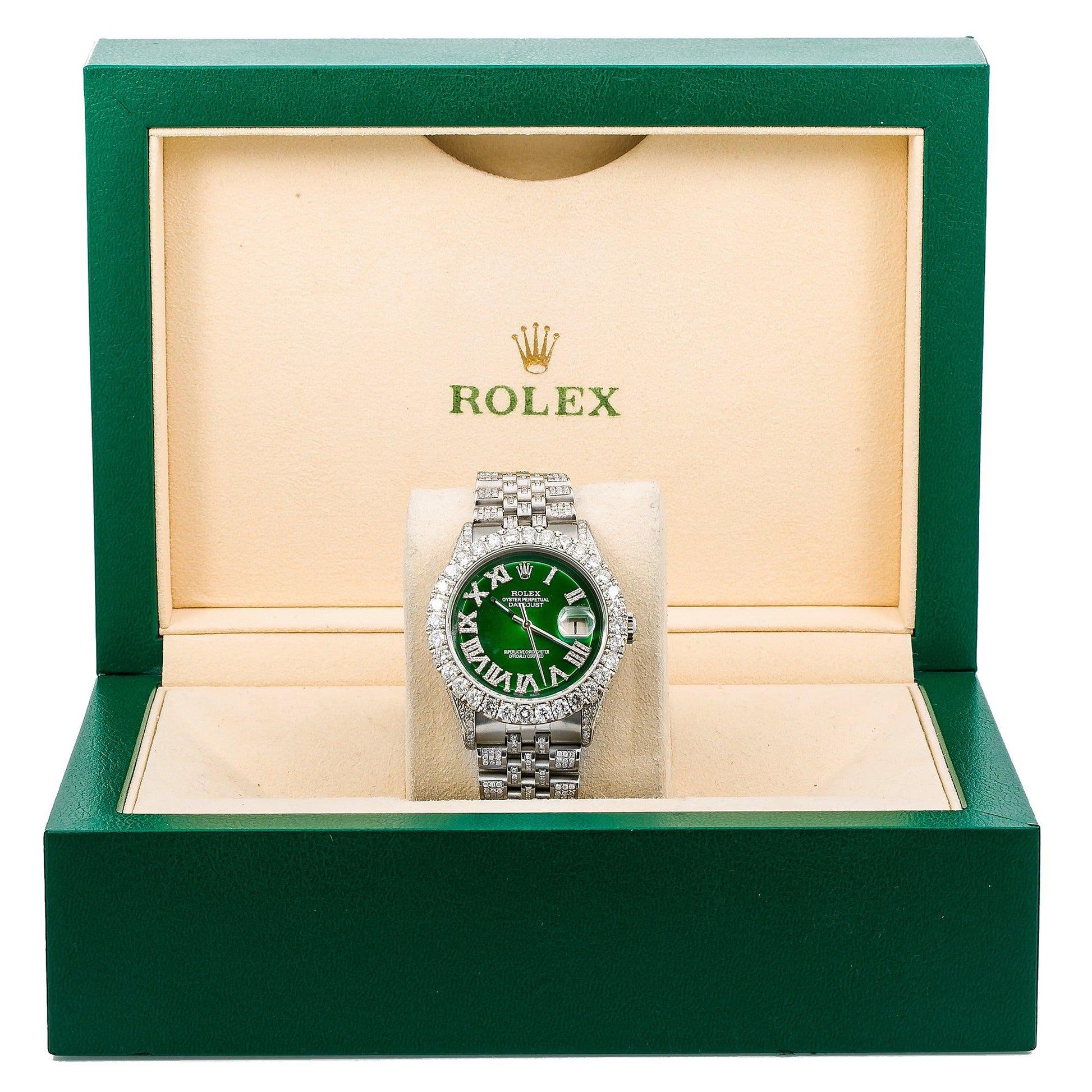 Rolex Datejust 36MM 1601 Green Roman Diamond Dial Diamond Bezel Stainless Steel Full Diamond Jubilee Bracelet 8.25ct