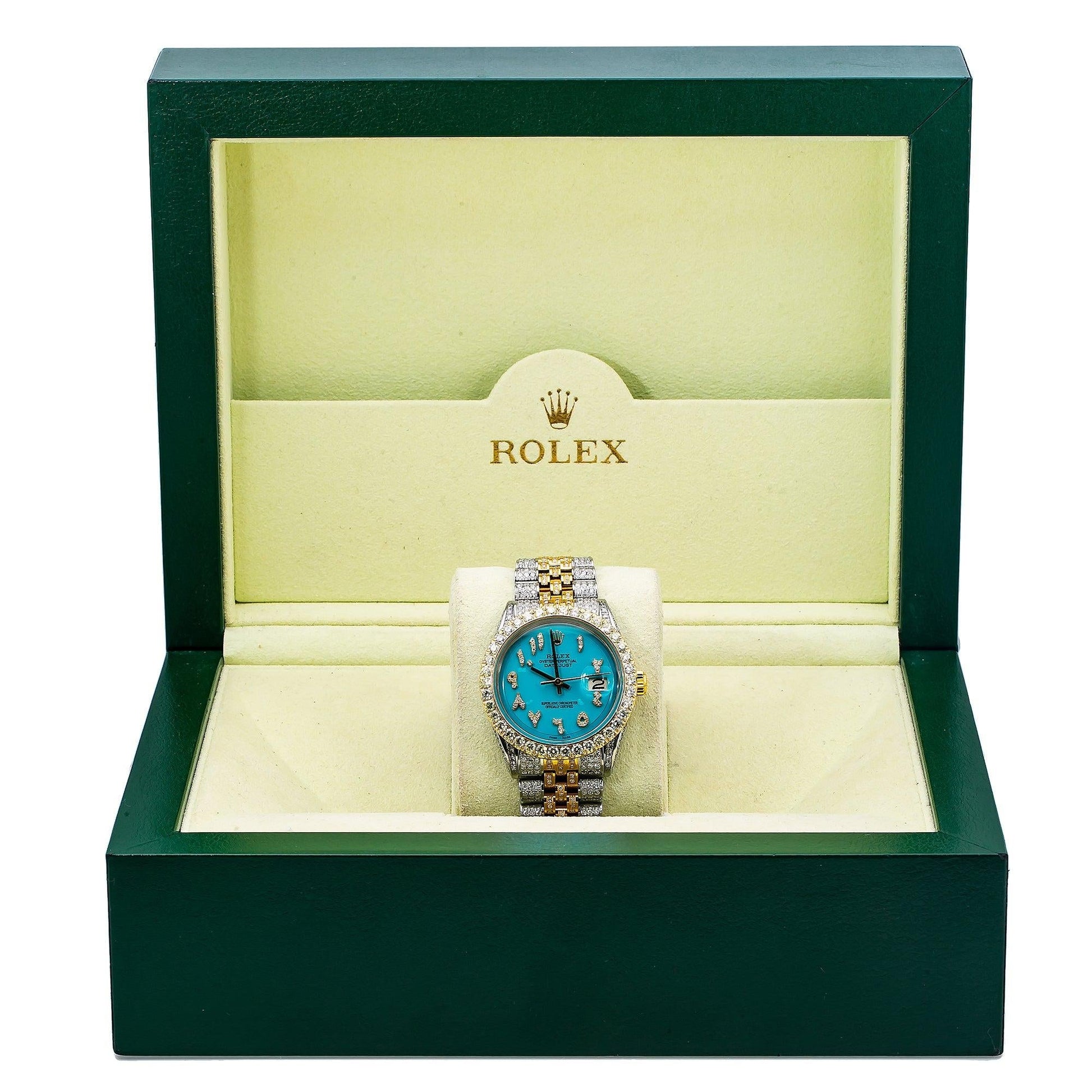 Rolex Datejust 36MM 1601 Turquoise Eastern Arabic Diamond Dial Diamond Bezel Two Tone Yellow Gold Full Diamond Jubilee Bracelet 8.75ct