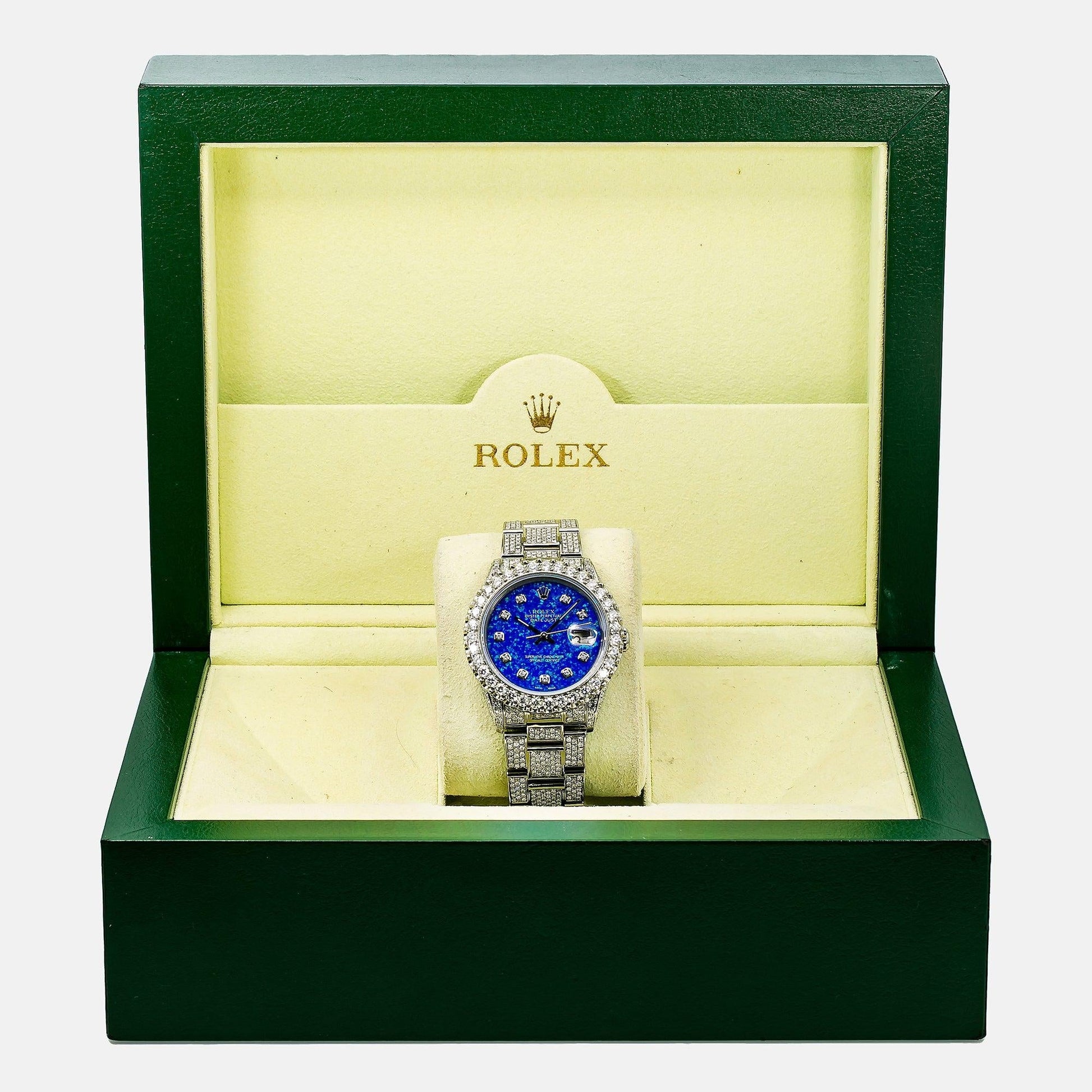 Rolex Datejust 36MM 16014 Blue Diamond Dial Diamond Bezel Stainless Steel Full Diamond Oyster Bracelet