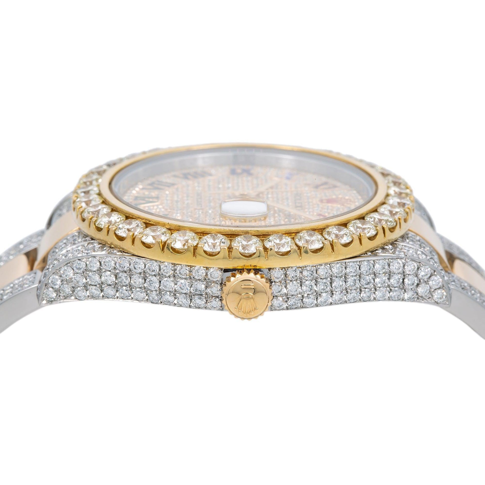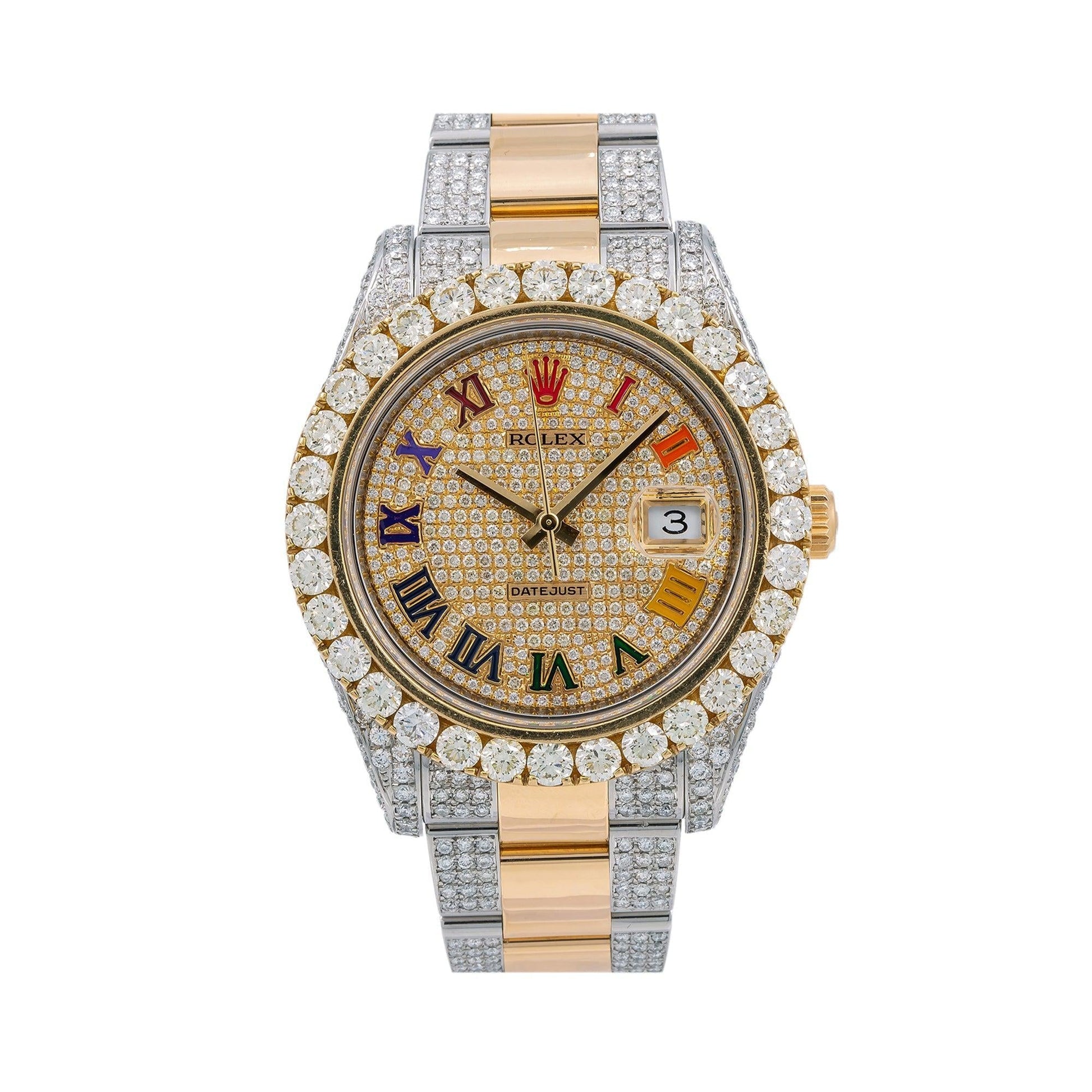 Rolex Datejust 41MM 116333 Diamond Paved Rainbow Roman Dial Diamond Bezel Two Tone Yellow Gold Semi Diamond Oyster Bracelet