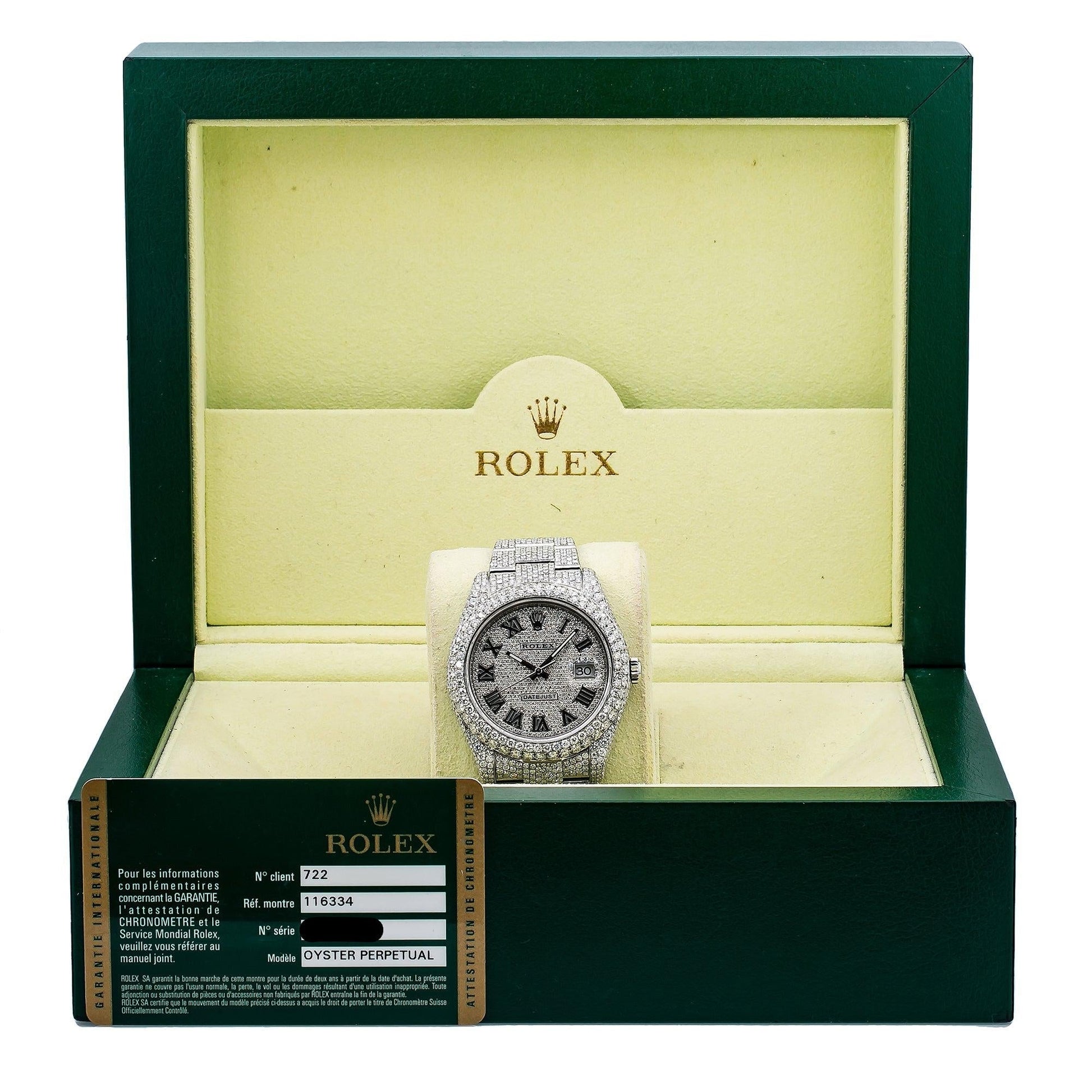 Rolex Datejust 41MM 116334 Diamond Paved Roman Dial Diamond Bezel Stainless Steel Full Diamond Oyster Bracelet