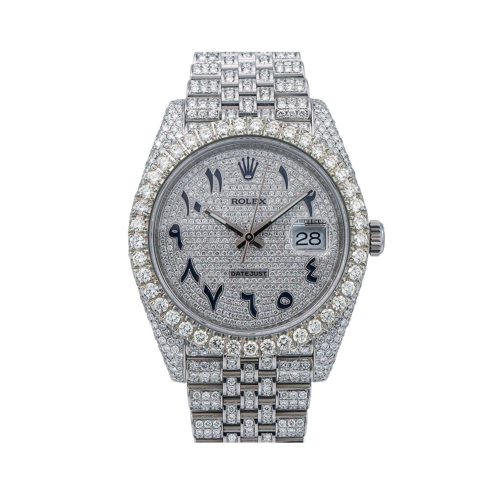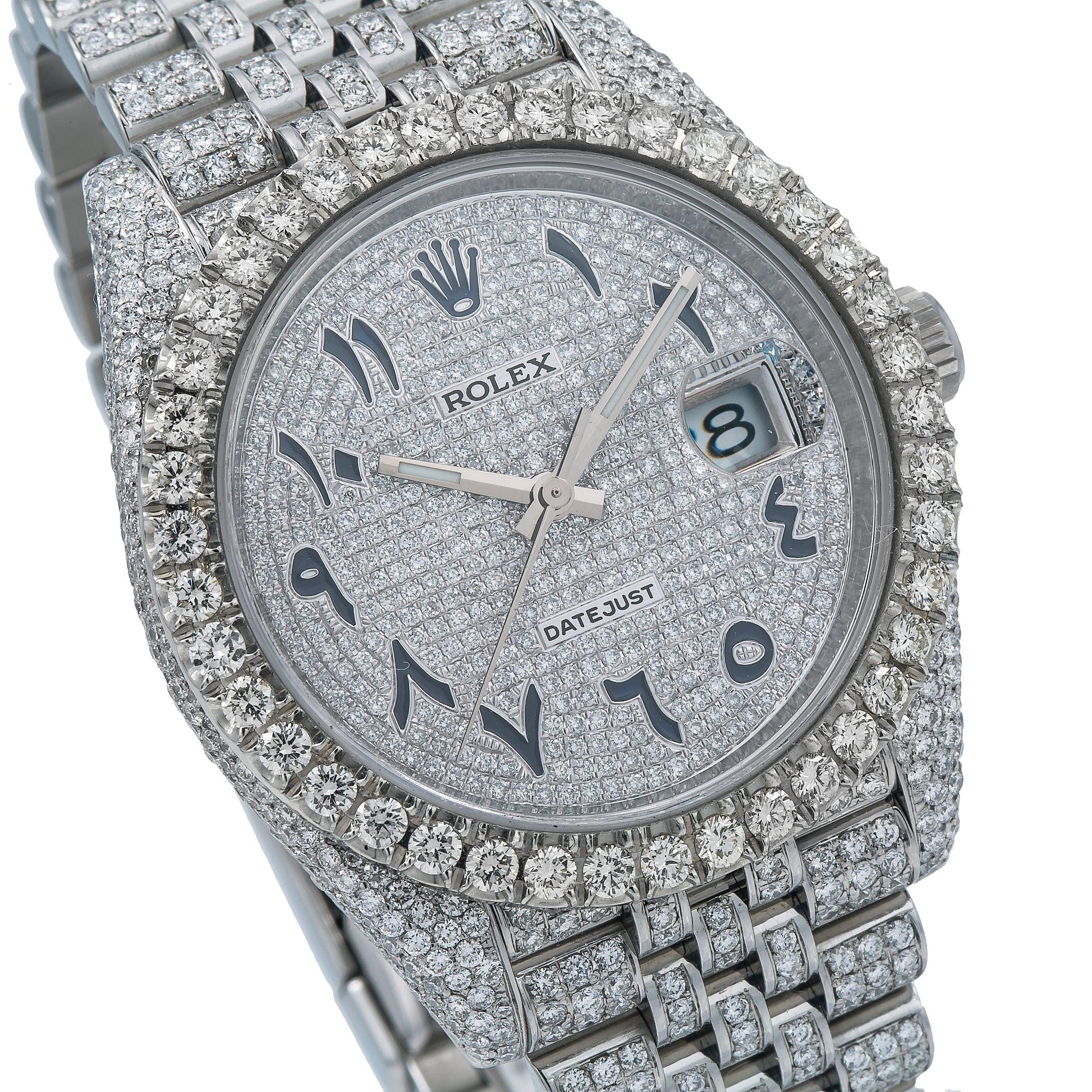 Rolex Datejust 41MM 126300 Diamond Paved Eastern Arabic Dial Diamond Bezel Stainless Steel Full Diamond Jubilee Bracelet