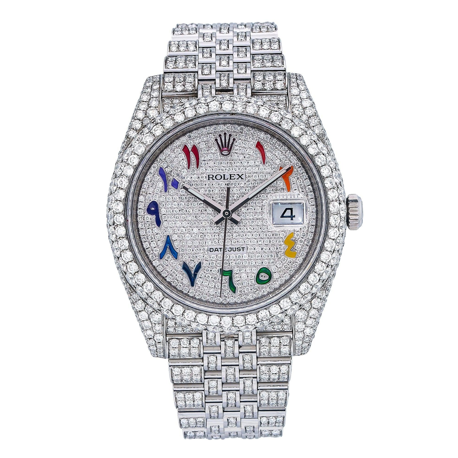 Rolex Datejust 41MM 126300 Diamond Paved Rainbow Eastern Arabic Dial Diamond Bezel Stainless Steel Full Diamond Jubilee Bracelet