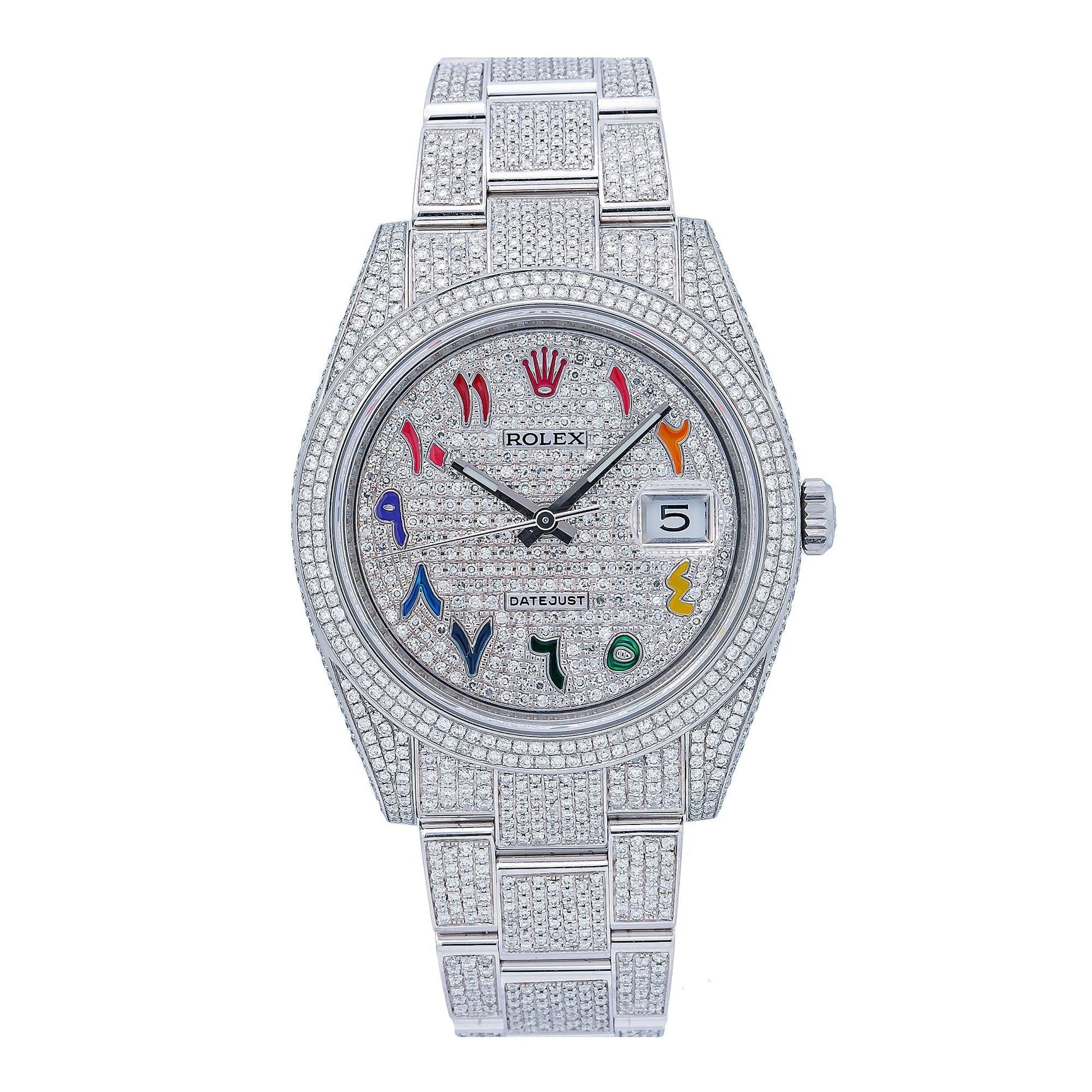 Rolex Datejust 41MM 126300 Diamond Paved Rainbow Eastern Arabic Dial Diamond Bezel Stainless Steel Full Diamond Oyster Bracelet