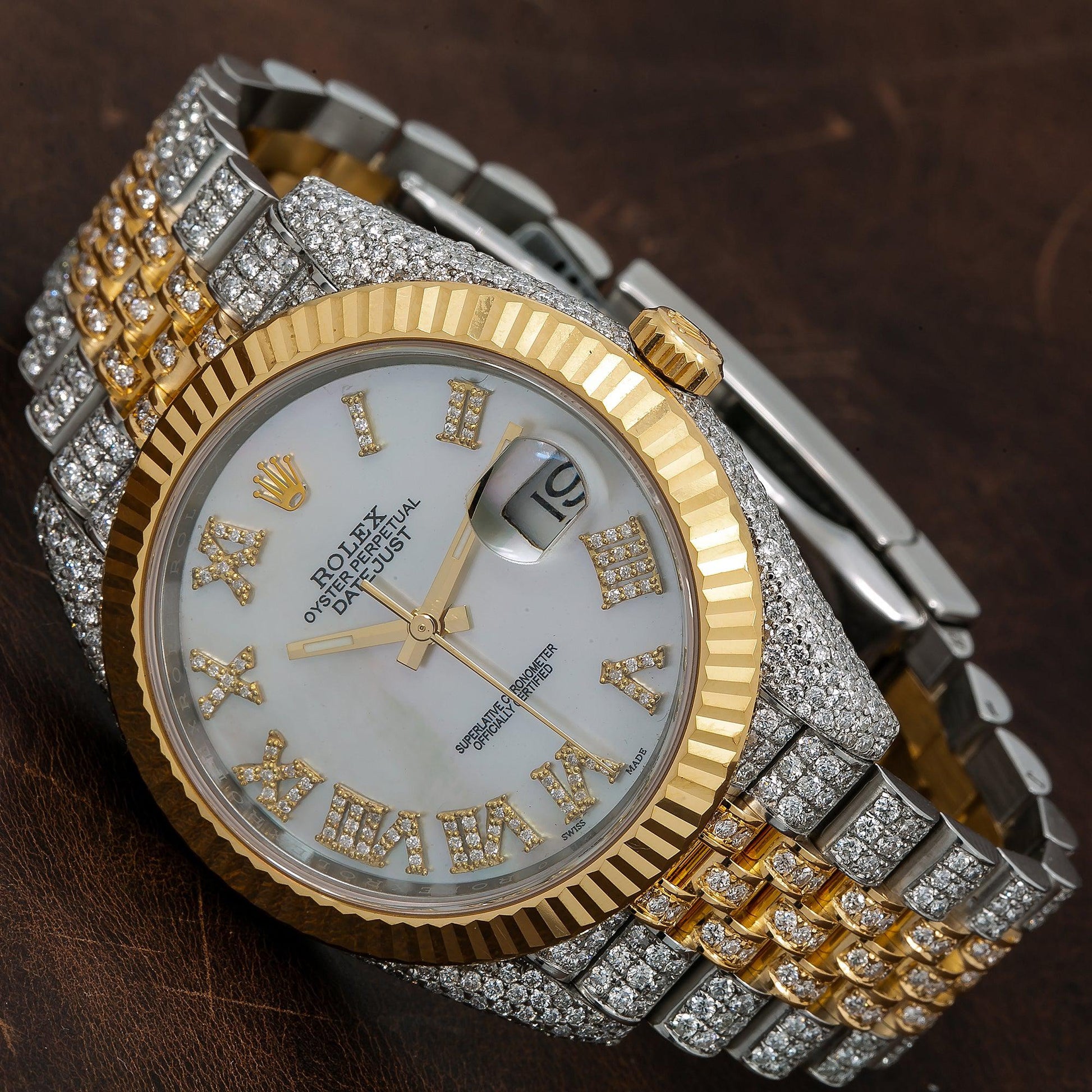 Rolex Datejust 41MM 126333 Mother of Pearl Roman Diamond Dial Fluted Bezel Two Tone Yellow Gold Full Diamond Jubilee Bracelet