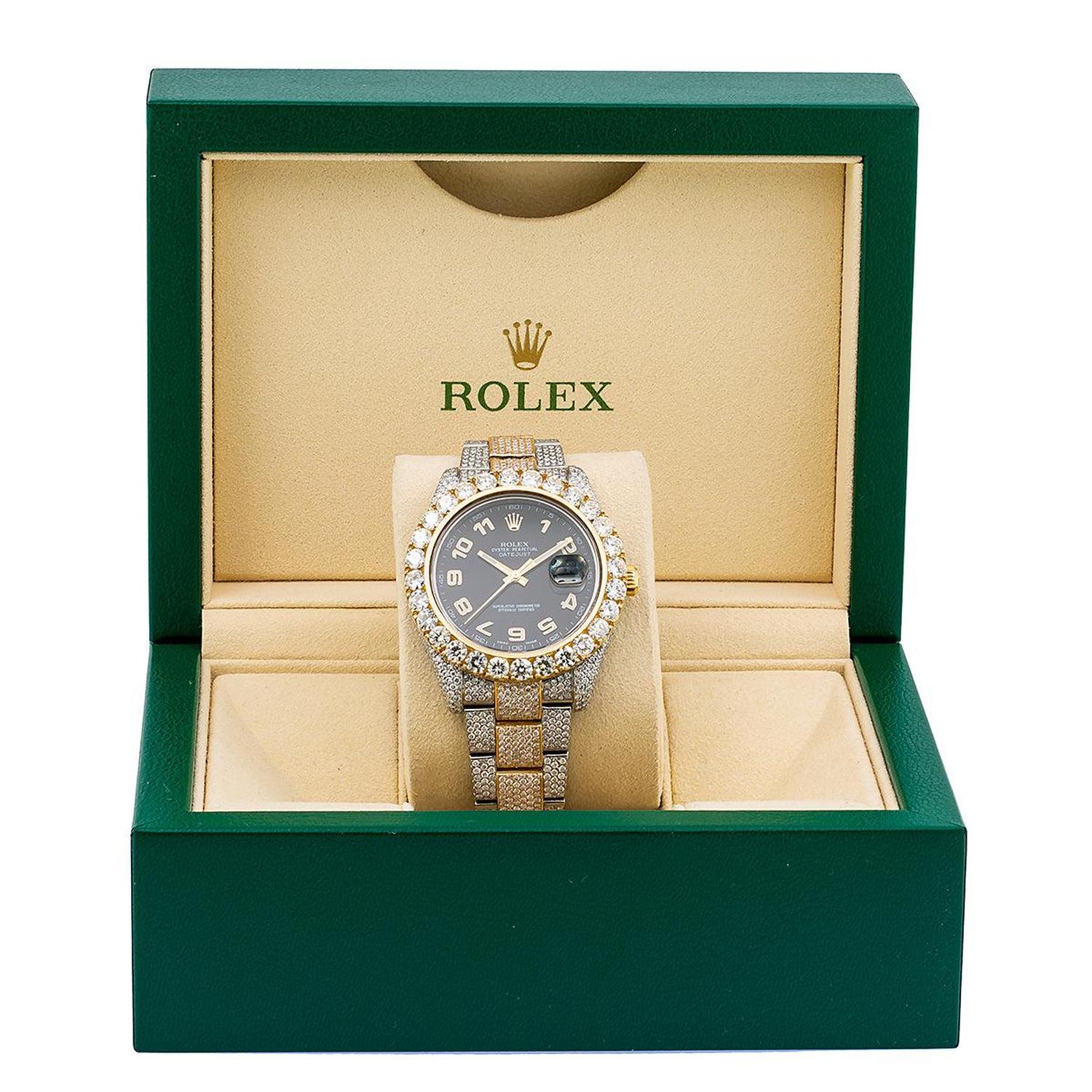 Rolex Datejust II 41MM 116333 Black Arabic Dial Diamond Bezel Two Tone Yellow Gold Full Diamond Oyster Bracelet 25.75ct