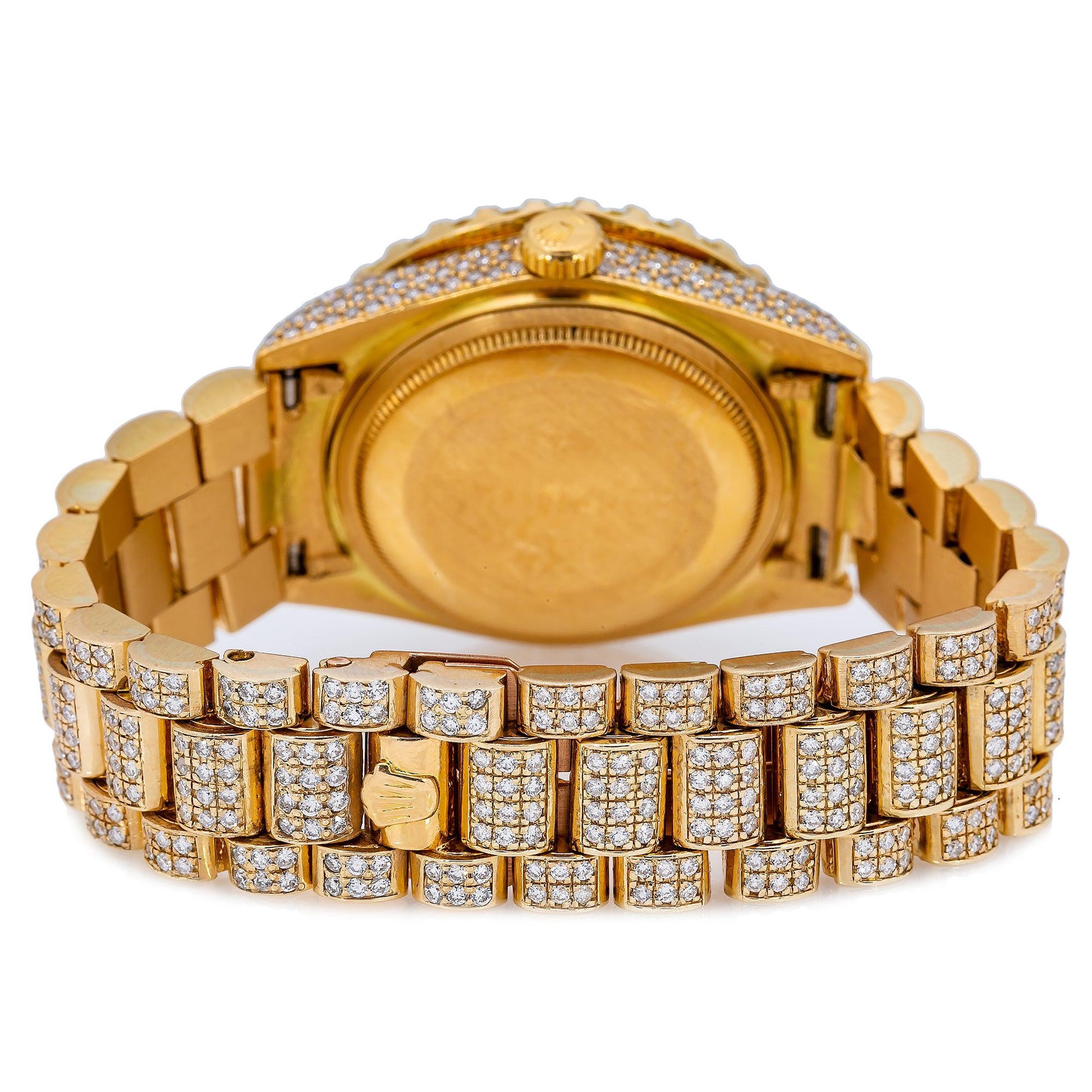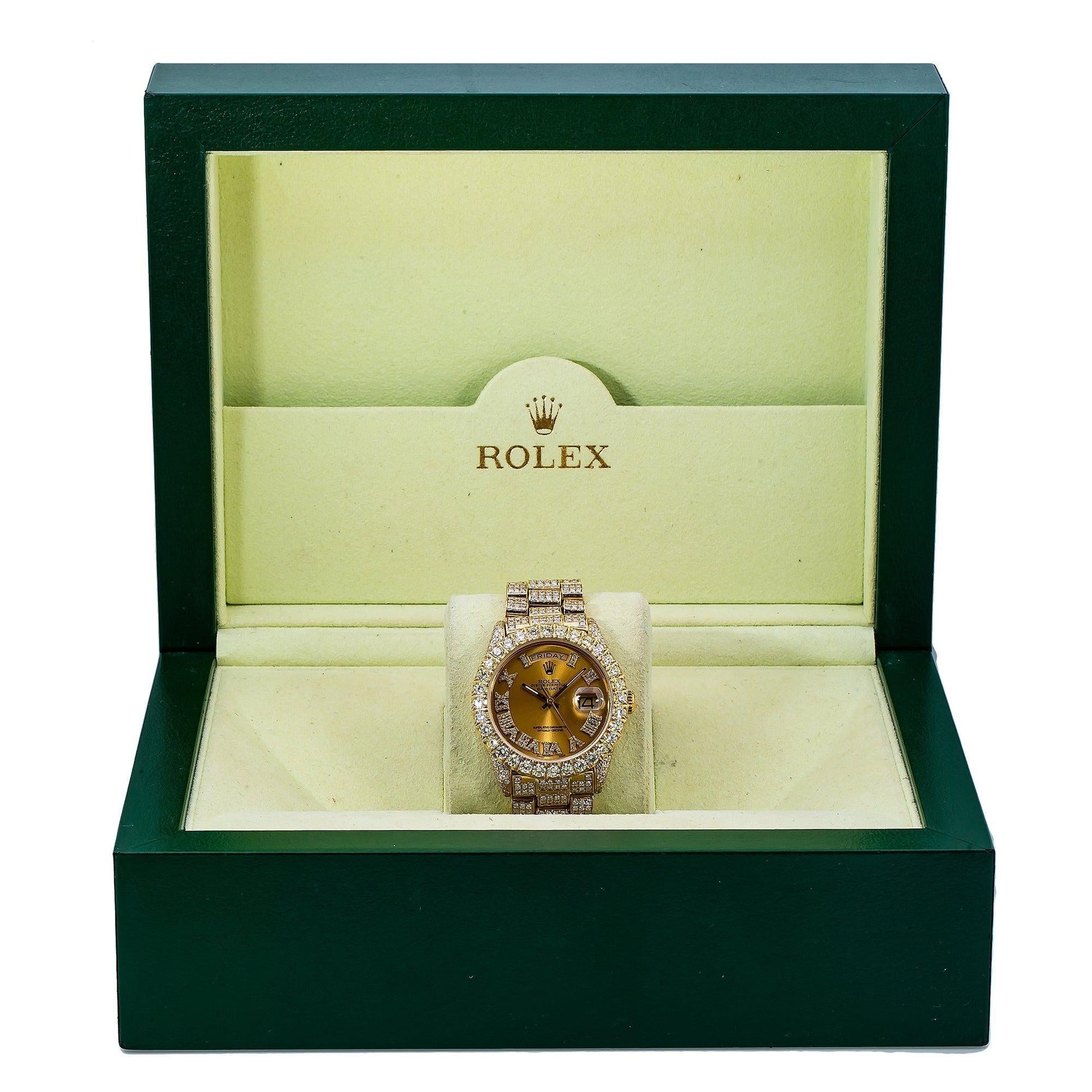 Rolex Day-Date 36MM 18038 Champagne Roman Diamond Dial Diamond Bezel 18K Yellow Gold Full Diamond President Bracelet