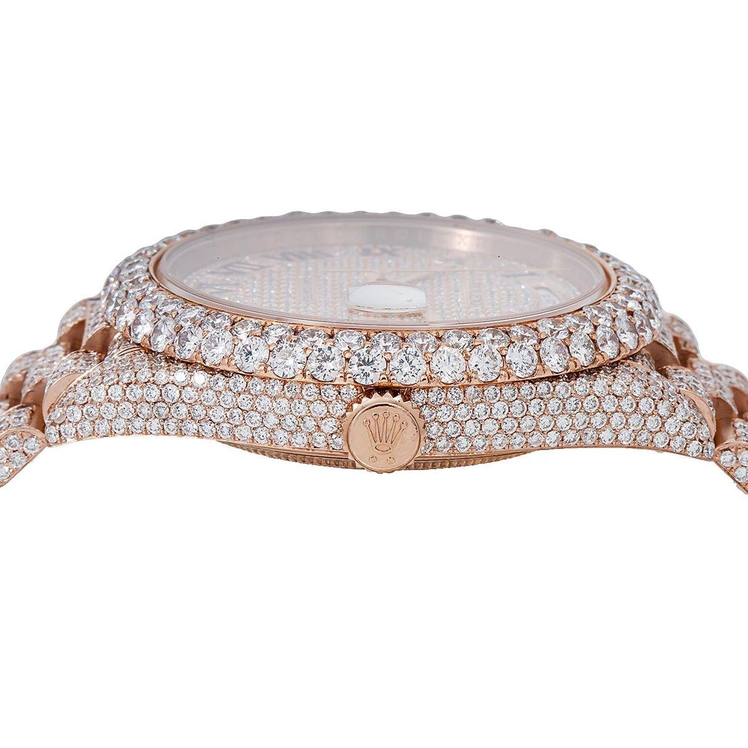 Rolex Day-Date 40MM 228235 Diamond Paved Roman Dial Diamond Bezel 18K Rose Gold Full Diamond President Bracelet 25.25ct