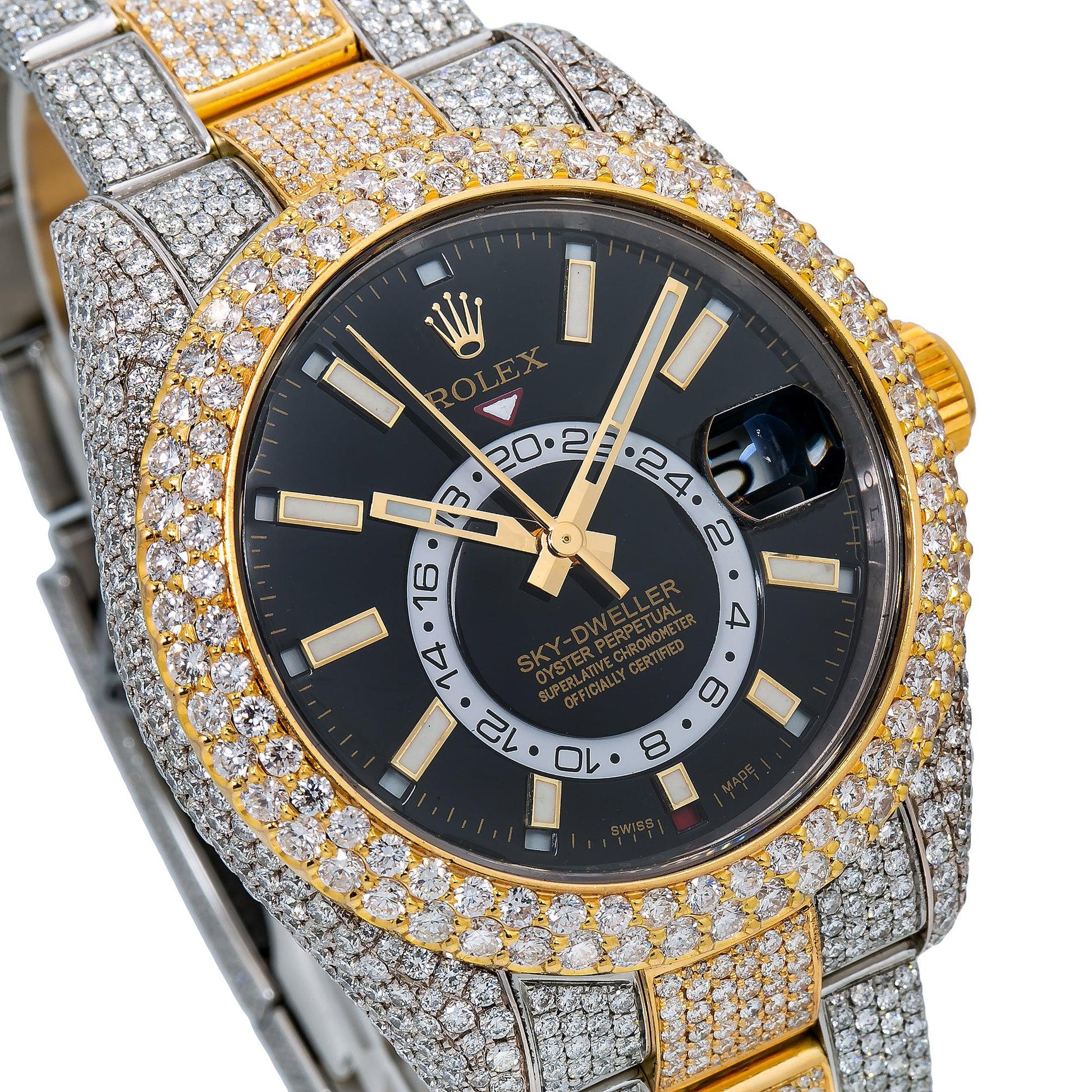 Rolex Sky-Dweller 42MM 326933 Black Dial Diamond Bezel Two Tone Yellow Gold Full Diamond Oyster Bracelet