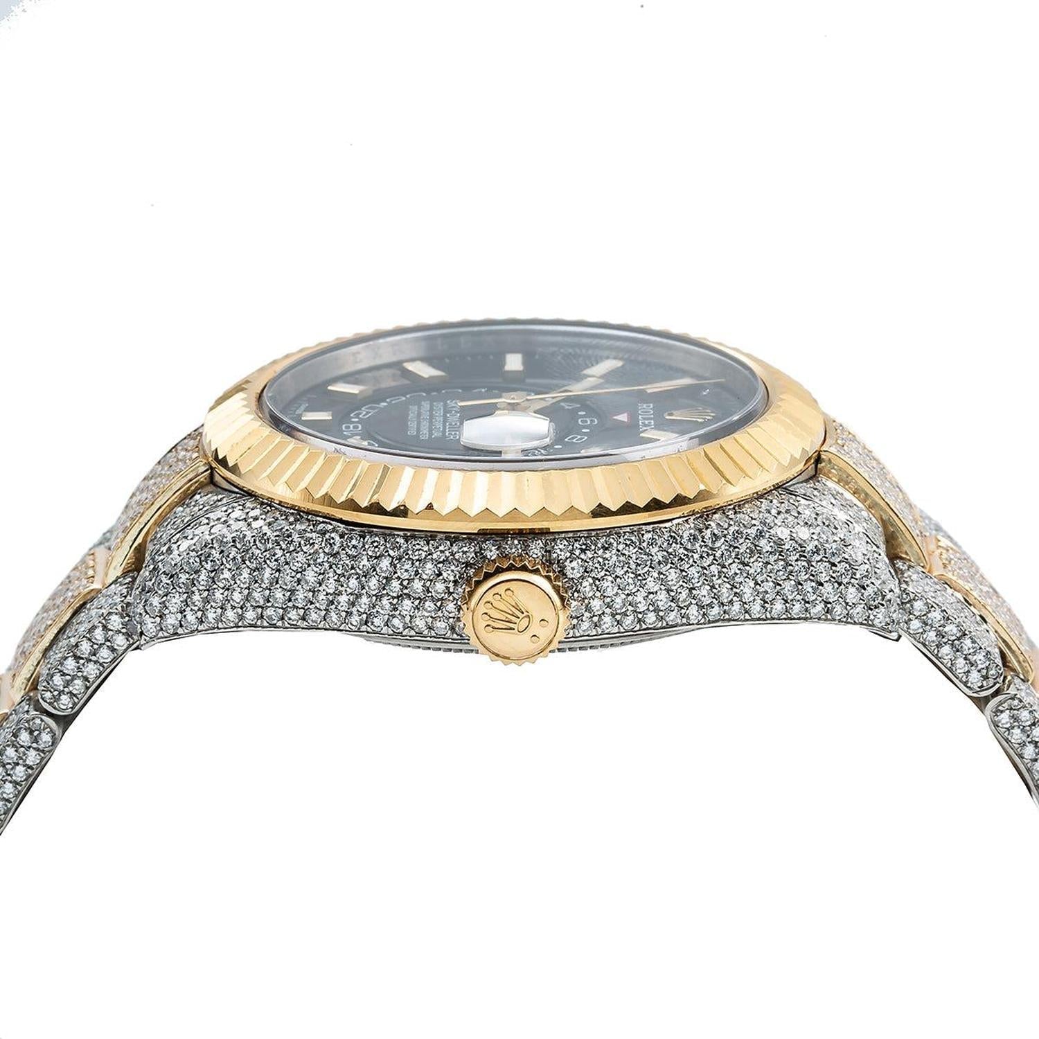 Rolex Sky-Dweller 42MM 326933 Black Dial Fluted Bezel Two Tone Yellow Gold Full Diamond Oyster Bracelet 21.5ct