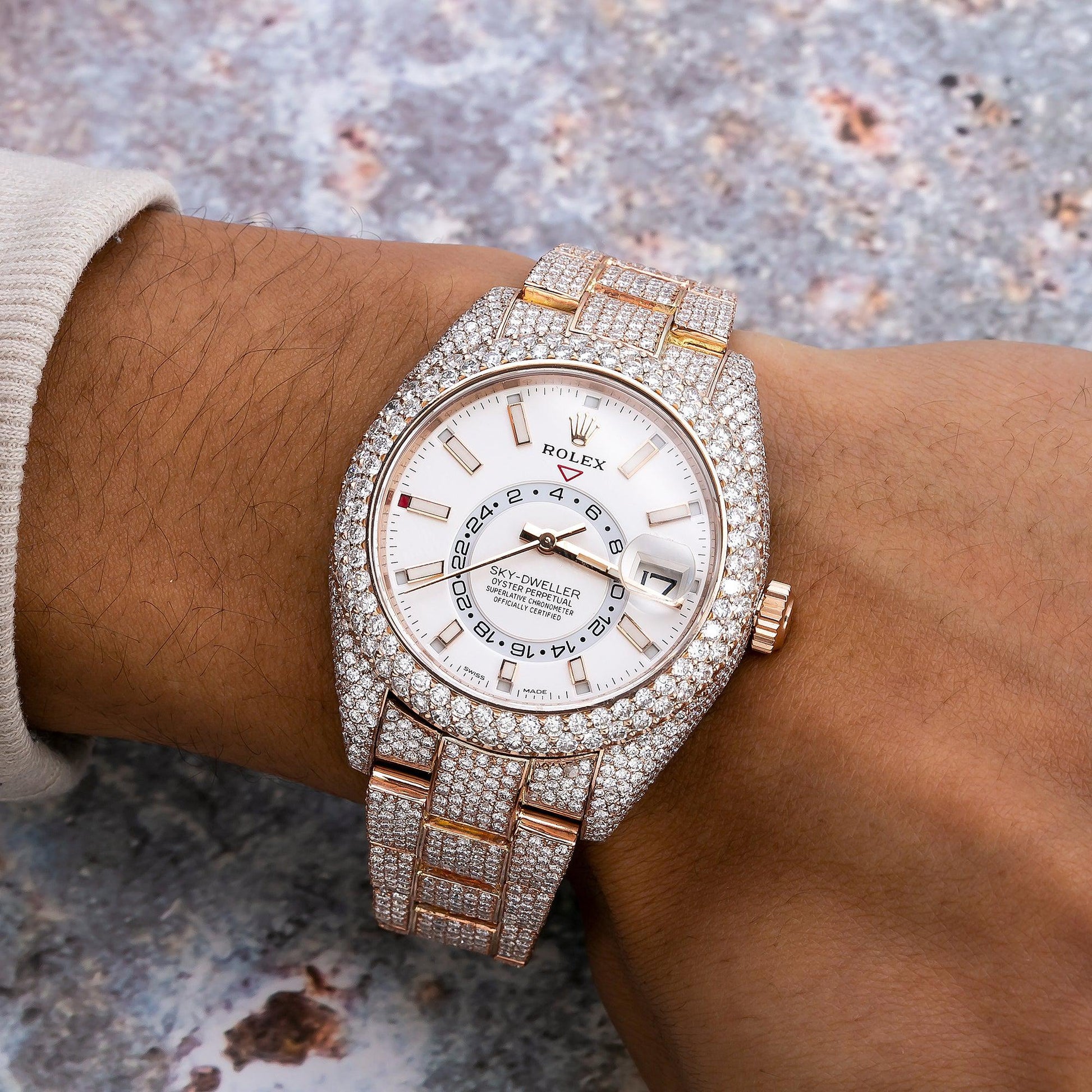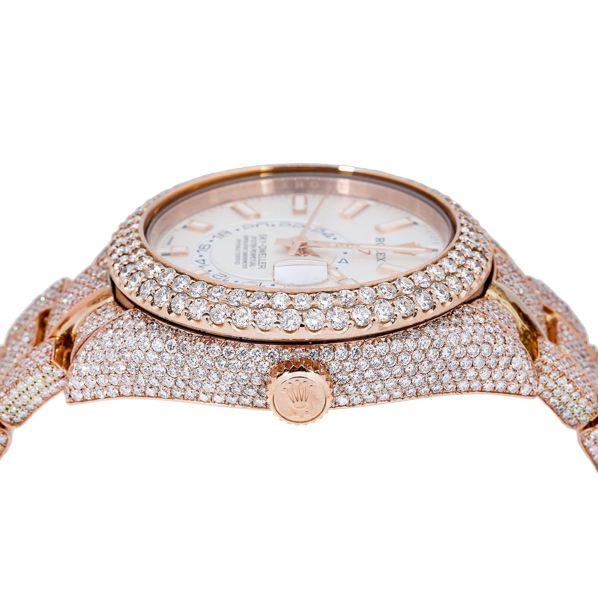Rolex Sky-Dweller 42MM 326935 Silver Dial Diamond Bezel 18K Rose Gold Full Diamond Oyster Bracelet 25.75ct