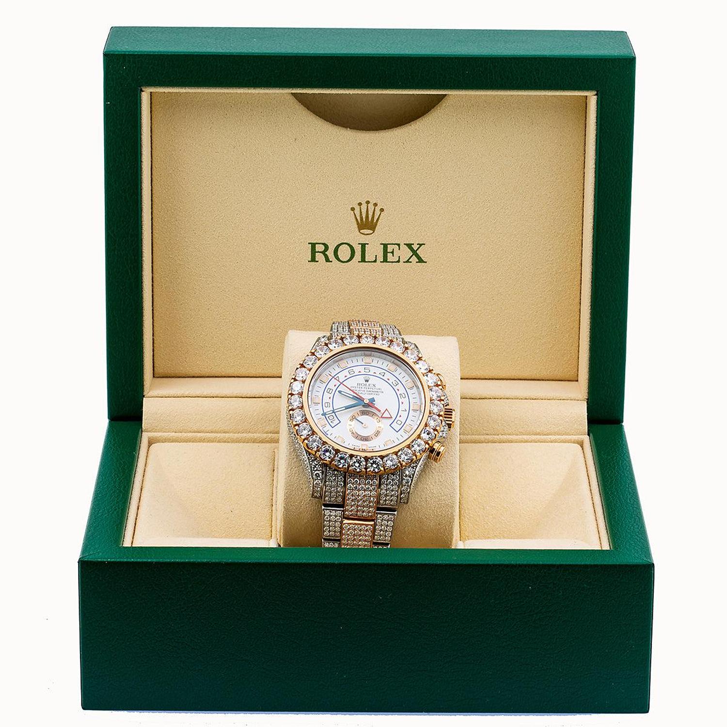 Rolex Yacht-Master II 44MM 116681 White Dial Diamond Bezel Two Tone Rose Gold Full Diamond Oyster Bracelet 17.5ct